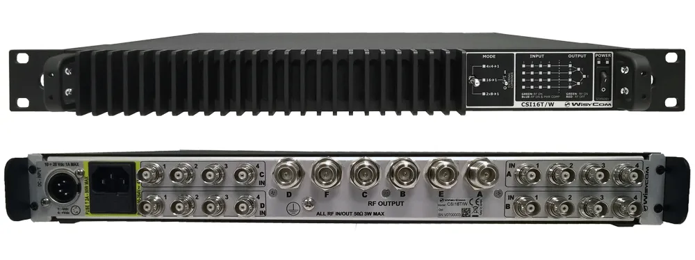 CSI16T communicates with Wisycom transmitter (i.e. MTK952N) through coaxial inputs and allows a smart power management: combiner loss are automatically compensate on Tx side!