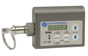 The RM is particularly useful for situations where an SM transmitter is concealed under a costume. A Single RM can make adjustments to any SM* in any frequency block through the SM’s microphone.
