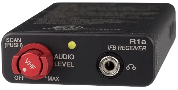 Wireless IFB (interruptible fold back) systems are used for talent cueing and crew communications in broadcast and motion picture production. In other cases, the IFB system is used by directors and other management to monitor program audio during a production. The IFBR1a-VHF receiver provides simplicity and flexibility in a package that is intuitive for untrained users to operate.